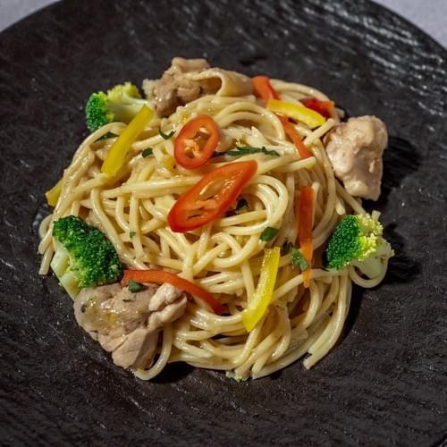以香氣濃郁的綠咖哩為基底,融合椰奶的柔和甘甜與辛香的完美平衡。嚴選嫩滑雞肉與Q彈義大利麵,讓每一口都散發南洋風情的異國香氣,濃郁卻不膩,清爽中帶著迷人的層次,是一道結合熱情與溫柔的異國美味。